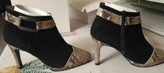 Botines ante y piel tacón fino detalles serpiente