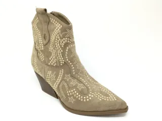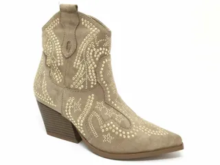 Botas cowboy mujer beige con tachuelas