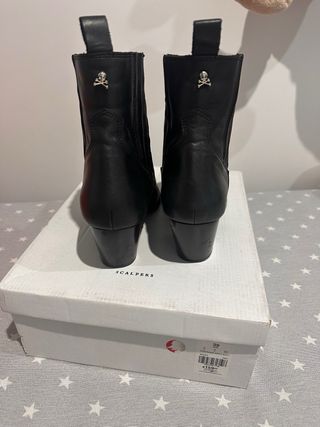 Botines de piel negros de la marca Scalpers. - Diseño de caña media. - Punta fina. - Tacón cuadrado.