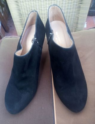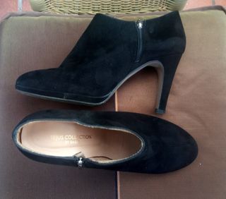 Elegantes botines de tacón en color negro. - Material de ante. - Tacón alto y fino. - Diseño tipo botín. (no viene en su caja original)