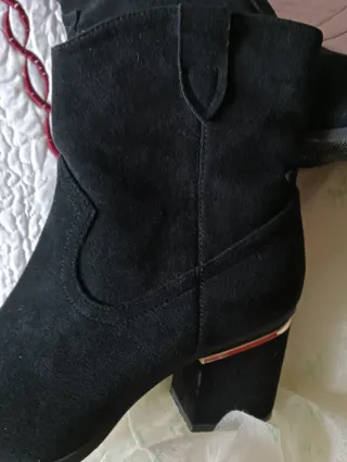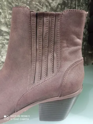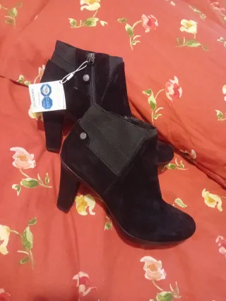 Botines de ante con un diseño moderno y elegante. - Tacón grueso con detalle dorado. - Cierre de cremallera lateral.muy comodos