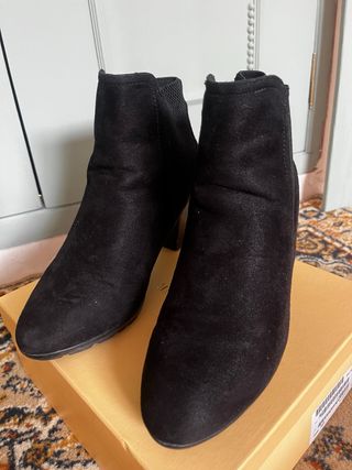 Botines de tacón en color negro. - Material exterior tipo ante. - Tacón grueso. - Diseño elástico en los laterales.
