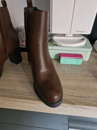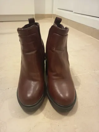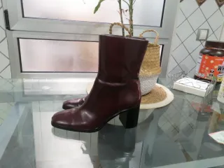 Botines tacón piel marrón talla 37