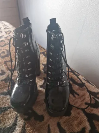 Botines de tacón con cordones. - Tacón grueso. - Suela de plataforma. - Diseño de combate. Solo he puesto un ratito en un evento.