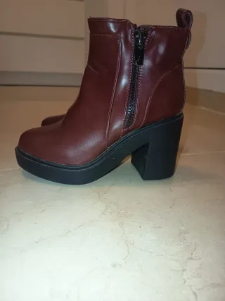 Botines de tacón de la marca Bershka. - Diseño simil ante. - Detalle de hebilla en el lateral. - Tacón grueso.
