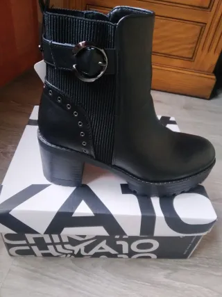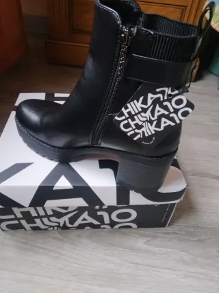 Botines de mujer de la marca Chika10. - Diseño moderno y versátil. - Cierre de cremallera lateral. - Detalle de hebilla. - Suela de plataforma. - Tacón grueso., nuevas