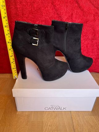 Botines de tacón negros, nuevos a estrenar. - Tacón grueso. - Cierre de cremallera lateral. - Detalle elástico en el lateral.
