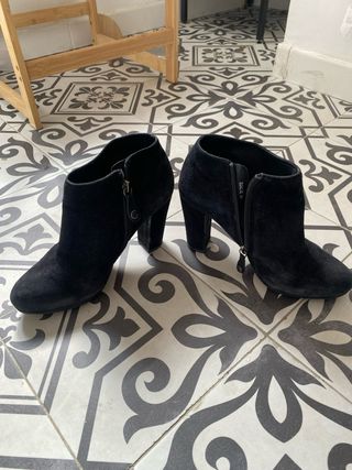 Dos pares de botines de piel. - Diseño Chelsea. - Tacón grueso. - Plataforma delantera. El otro como se observa en la foto. 6 euros los dos