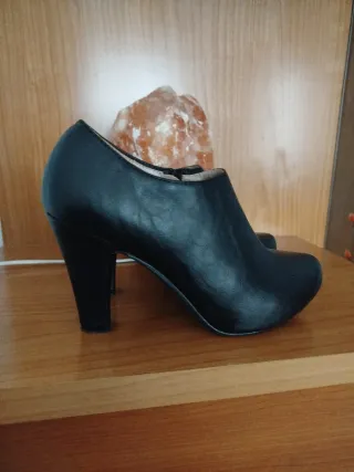 Botines de mujer con tacón, ideales para completar tu look. - Diseño elegante y moderno. - Cierre de cremallera lateral. - Punta afilada. - Tacón grueso y estable. - Usados en pocas ocasiones,en perfecto estado de conservación