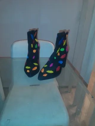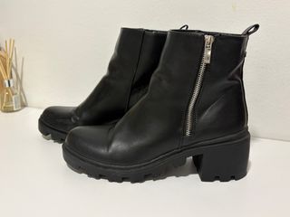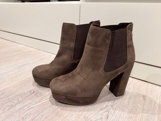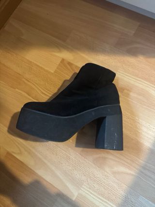 Botines de tacón alto con plataforma. Sólo usados una vez, los vendo porque me van un poco grandes. - Diseño moderno y elegante. - Cierre lateral con cremallera. - Detalle de hebilla y elástico. - Suela gruesa con buen agarre.