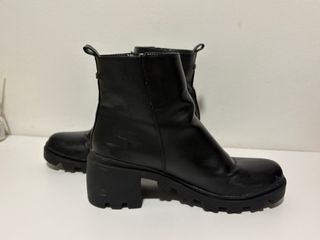 Botas de estilo moderno con detalle de cremallera. Tiene alguna marca de rascado; se ven en la foto. Aun así se han usado poco. - Cremallera lateral plateada. - Suela gruesa con plataforma. - Tacón de 6 cm