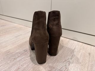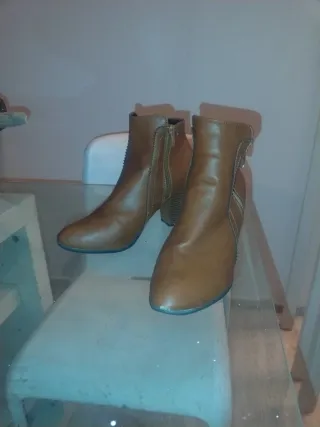 Botines marrones de tacón, sin estrenar. - Diseño moderno y elegante. - Cierre de cremallera lateral. - Tacón grueso para mayor comodidad.
