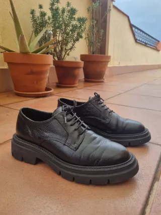 Zapatos de cordones con suela gruesa. - Material: Cuero - Tacón de 4 cm Vendo mis lindos zapatos de cuero con cordones, porque me quedan un poco apretados en la parte delantera. Usadas muy pocas veces (máx. 10), casi como nuevas. La parte interior delantera tiene un pequeño desgaste por ajuste, no se nota desde fuera.