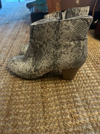 Botines con un llamativo estampado de serpiente en tonos grises y blancos. Cuentan con un cierre de cremallera lateral para facilitar su puesta. - Diseño de serpiente. - Cierre de cremallera lateral. - Tacón grueso.