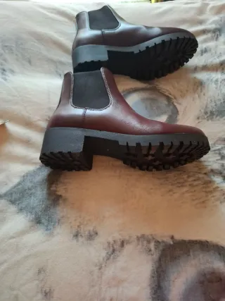 Botines burdeos con suela gruesa ,tacon 4 cms