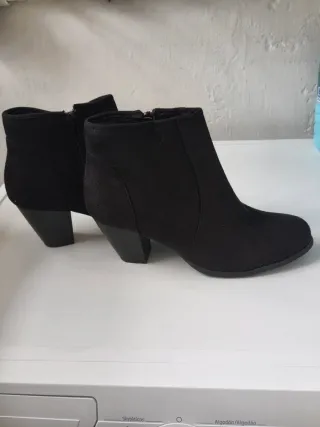 Botines negros con tacón. Un básico para cualquier armario. - Material exterior tipo ante. - Cierre de cremallera lateral. - Tacón grueso y estable.