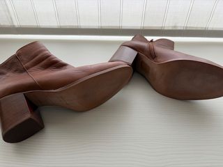 Botines de tacón de piel. Talla 38, suelas en perfecto estado, una única puesta. - Diseño elegante y moderno. - Tacón grueso para mayor comodidad. - Suela con plataforma.