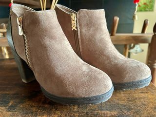 Botines ante marrón tacón cremallera dorada
