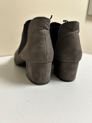 Botines de tacón con un diseño moderno y versátil. - Material exterior tipo ante. - Tacón grueso para mayor comodidad. - Cierre lateral con cremallera.
