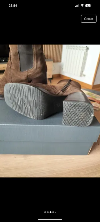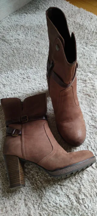 Se venden botines de mujer de ante n° 37. Usados dos veces realmente. Entrega en mano. - Material exterior de ante. - Detalle de borla en el lateral. - Cierre de cremallera. - Tacón grueso.