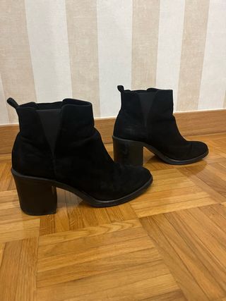 Botines negros de tacón - Material exterior de ante. - Cierre de cremallera en la parte trasera. - Tacón grueso.