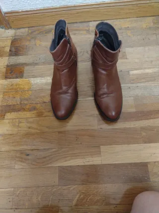 Botines de piel en color marrón. Un solo uso. Me los regalaron y me queda pequeños - Material exterior: Piel - Cierre lateral con cremallera oculta - Tacón cuadrado - Suela antideslizante