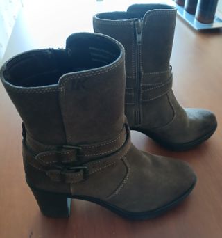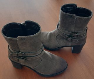 Botines de tacón con un diseño elegante y moderno. Usado dos veces - Material exterior tipo ante. - Detalle de trenzado decorativo en la caña. - Cierre de cremallera lateral. - Tacón grueso y cómodo.