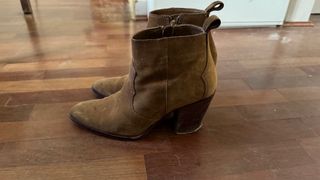 Botines de ante Alpe en color marrón, talla 39. Usados poco, me quedaron apretados ;( - Un diseño con estrella. - Cierre con cremallera atrás. - Tacón cómodo (5cm).