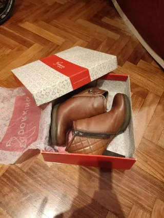 BotinesBotines de piel en color marrón, talla 40. A estrenar. Preciosos. - Cierre con cremallera lateral. - Diseño de caña corta. - Tacón de altura media. de piel en color marrón, talla 38.