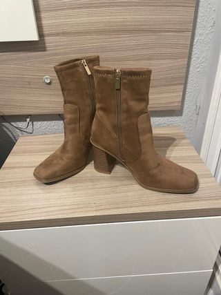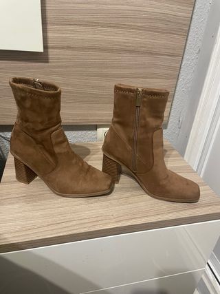 Botines de tacón en color marrón. - Material exterior de ante. - Cierre de cremallera lateral. - Tacón grueso y cuadrado.