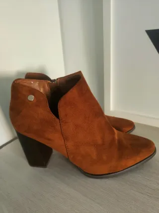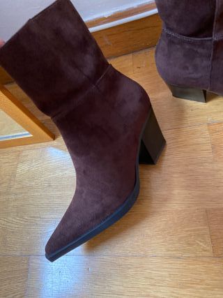 Botines de tacón en color marrón, sin estrenar. Ideales Talla 40🤎🤎 No negociables Marca seaside Precio original casi 40 euros Estado 10/10❤️❤️ A estrenar Envío rápido 🤟🏼🤟🏼 - Diseño moderno con abertura lateral. - Tacón grueso y estable. - Acabado tipo ante.