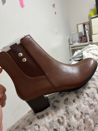 Botin de tacón para mujer en color marrón. Un diseño elegante y versátil. - Tacón grueso. - Correa con hebilla decorativa. Solo se ha puesto una vez.