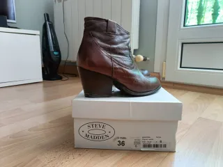 Botines de piel auténtica GAIMO, talla 39. Muy cómodos, suela flexible, tacón estable. Hechos en España. En excelente estado: sin daños, interior limpio y piel suave. Calidad premium y diseño elegante, perfectos para uso diario.