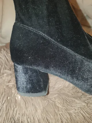 Botas de terciopelo con tacón. - Material: Terciopelo. - Diseño: Botín. - Tacón: Bloque.
