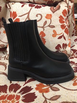 Botines de mujer en color negro. - Talla 39. - Diseño tipo Chelsea. - Tacón grueso. - Plantillas acolchadas - Ideales para lluvia