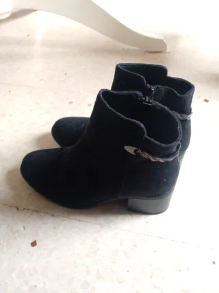 Botines negros de serraje, ideales para el otoño. Son un par de botines elegantes y cómodos. Talla 38. Daniela's. - Material: serraje - Estilo: Botín. - Tacon bajo. Más artículos escribiendo algeral en búsqueda general. Se hacen lotes en conjunto con los otros perfiles.