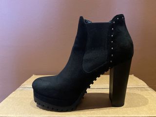 Botines de tacón con plataforma. - Material exterior tipo ante. - Tacón grueso y plataforma delantera. - Diseño moderno y elegante.