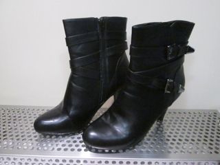 Botines con tacón color negro, numero 39. Usados un par de veces. Marca Anna Field. Altura tacón 8,5 cm. Altura caña 14 cm. Ancho caña 28 cm. Mira mis otros artículos para ahorrar en gastos de envío. - Material sintético. - Cierre de cremallera lateral. - Tira decorativa con hebilla. - Detalle metálico en el talón.