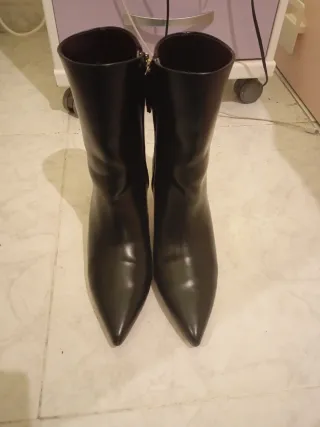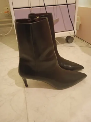 Botines de tacón fino de la marca Zara. - Diseño elegante y moderno. - Cierre de cremallera lateral. - Punta afilada.