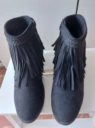 Botines de estilo western con un diseño único. - Material de ante. - Adorno de flecos largos. - Detalle trenzado en el cuello. - El tacón mide 5,5 cm.