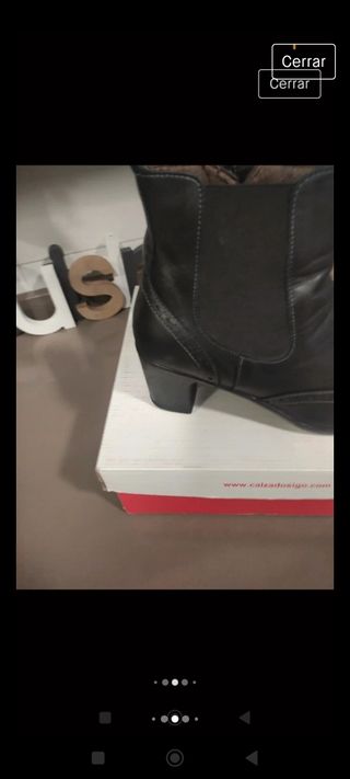 Botín de piel de fabricación española con tacón medio, son super cómodos y están en muy buen estado. Tienen las tapas recién cambiadas