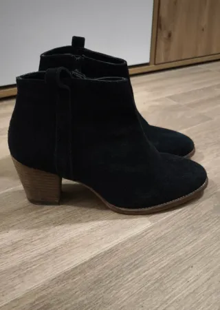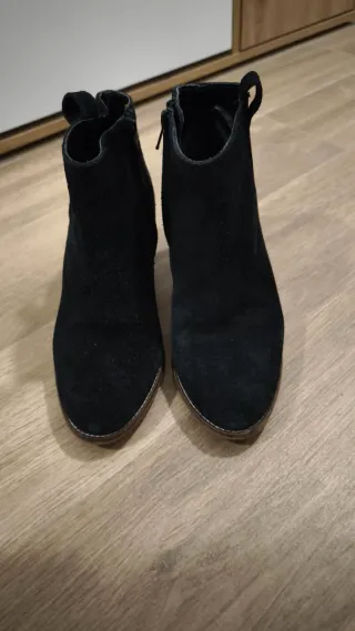 Botines de ante en color negro.,talla 36, utilizado muy poco como se puede ver en suela y tapas,7 cm tacón.