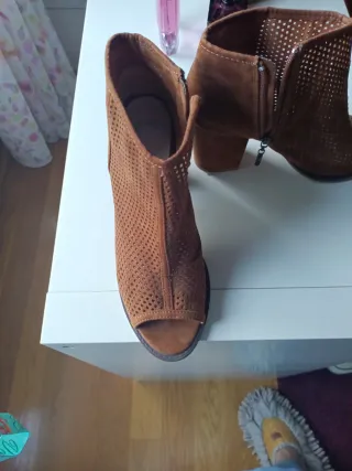 Botines de estilo campero de ante. - Material de ante. - Color marrón. - Diseño con bordados. con caja incluida tacón de 4,5cm cómodas las vendo porque me quedan grandes