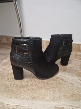Elegantes botines de ante con un diseño moderno y sofisticado. - Material: Ante - Color: Negro - Tacón alto - Cierre de cremallera Muy poco usados