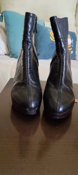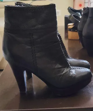 Botines de cuero de alta calidad, fabricados y comprados en Italia. - Diseño elegante y moderno. - Cierre de cremallera lateral. - Tacón con un toque sofisticado. - Máxima calidad de cuero. - Talla indicada 37 pero es italiano y talla grande, por lo que equivale a un 38.