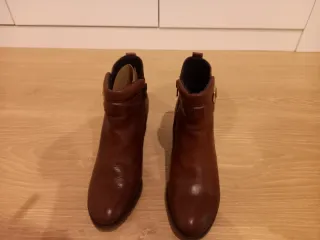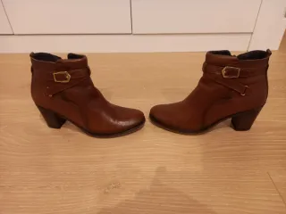 Botines de piel de la marca Hogl, en color marrón y talla 38. Han sido usados muy pocas veces, PVP 180 euros , muy cómodos - Diseño elegante con detalle de cadena dorada. - Tacón cuadrado. - Cierre de cremallera lateral.
