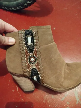 Botines tipo ante con tacón. Son cómodos y elegantes. - Material exterior de tipo ante. - Tacón grueso.