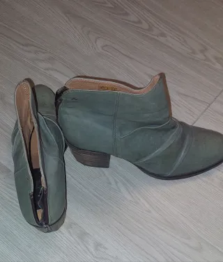 Botas cortas con un diseño moderno y llamativo. - Material exterior tipo ante. - Plataforma gruesa. - Tacón ancho para mayor comodidad. - Cremallera lateral para facilitar el calce. Muy comodas, talla 40. Calzan perfectas. Puestas 6 veces. Las vendo porque no me las pongo ya.