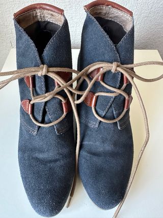 Botines de plataforma con cordones. Usados unas horas están nuevos - Material exterior tipo ante. - Tacón de cuña. - Cierre de cordones.