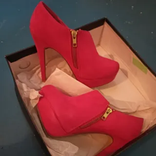 Elegantes botines de tacón alto con un llamativo color . Perfectos para añadir un toque de estilo a cualquier atuendo. Una sola puesta. - Diseño de botín. - Tacón de aguja. - Cierre de cremallera dorada.